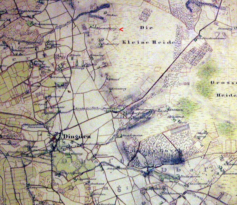 Info 1: In die Gegend von Dingden taucht der Name Himmelberg zum ersten Mal kurz vor dem 30-jährigen Krieges auf, der von 1618 bis 1648 wütete. Im Jahre 1613 taucht dort Heinrich Hemmelberg in Dingden-Lankern auf, der als Heele Erbe (ganzer Erbe) seine Abgaben zu leisten hatte (siehe „Der Erben und Kotten des Kirchspiels Dingden Qualität und Quantität vom 12. März 1613/Quelle N:W. Staatsarchiv Münster, Signatur: FM Bocholt Nr. 392).