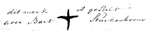 2. Albertus 'Bart' Hendriksz. Sturkenboom, gedoopt 27 Mrt 1740 in Bunnik, leefde 9 Feb 1782 in Vechten, leefde 25 Nov 1786 in Bunnik hofstede de Clomp, leefde 1792, overleden 31 Dec 1824 in Oudwulven. Hij trouwde 30 Jun 1772 in Jutphaas, Maria Kippersluis, ook bekend als Maria Kippensluijs, geboren waarschijnlijk 1752, (dochter van Antonie Arien Kippersluis en Cornelia Aarts van Schaijk) gedoopt 28 Okt 1752 in Jutphaas, overleden 29 Nov 1833. Kinderen:
