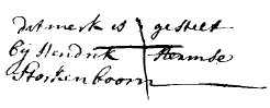 3. Jan Hendriksz. Sturkenboom, geboren in Vechten, gedoopt 18 Mei 1743 in Bunnik, overleden 19 Aug 1815 in Houten, leefde in Houten "op de Houtense Wetering", leefde 6 Apr 1794. Hij trouwde 28 Apr 1778 in Werkhoven, Johanna 'Jannigje' Pauw, geboren waarschijnlijk 1754 in Werkhoven, (dochter van Cornelis 'Kees' Pauw en Agata 'Aagje/IJda' Jansdr v Gend/Gent) gedoopt 2 Jul 1754 in Werkhoven (RK), overleden 11 Mrt 1824 in Schonauwen. Kinderen: